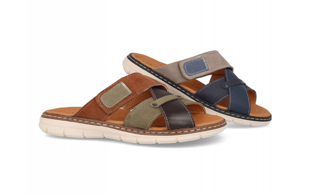 Material exterior piel, interior y plantilla (Gel) de textil foamizado, piso-suela sintético, altura del tacón / cuña 3 cm. colores: kaki y jeans