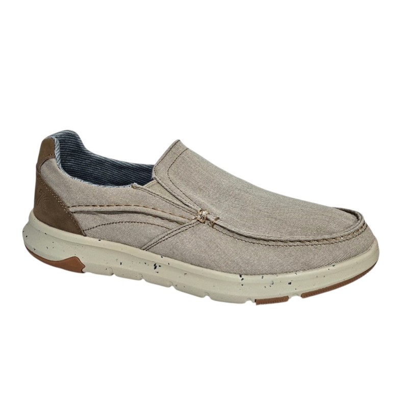 Material exterior polipiel y textil, interior y plantilla de textil foamizado, piso-suela goma, altura del tacón / cuña 2.5 cm. colores: beige, marino y kaki