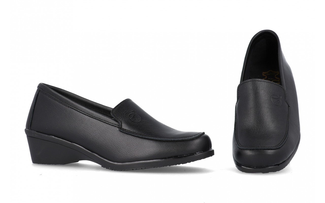 Corte exterior piel, interior de textil foamizado, plantilla de piel, piso-suela sintético, altura del tacón / cuña 2.5 cm. color: negro