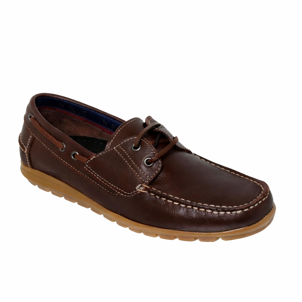Material exterior e interior piel de vacuno (Cosido a mano) plantilla de piel anatómica con Látex, piso-suela de caucho, altura del tacón / cuña 2.5 cm. colores: cuero y marino