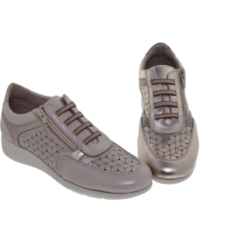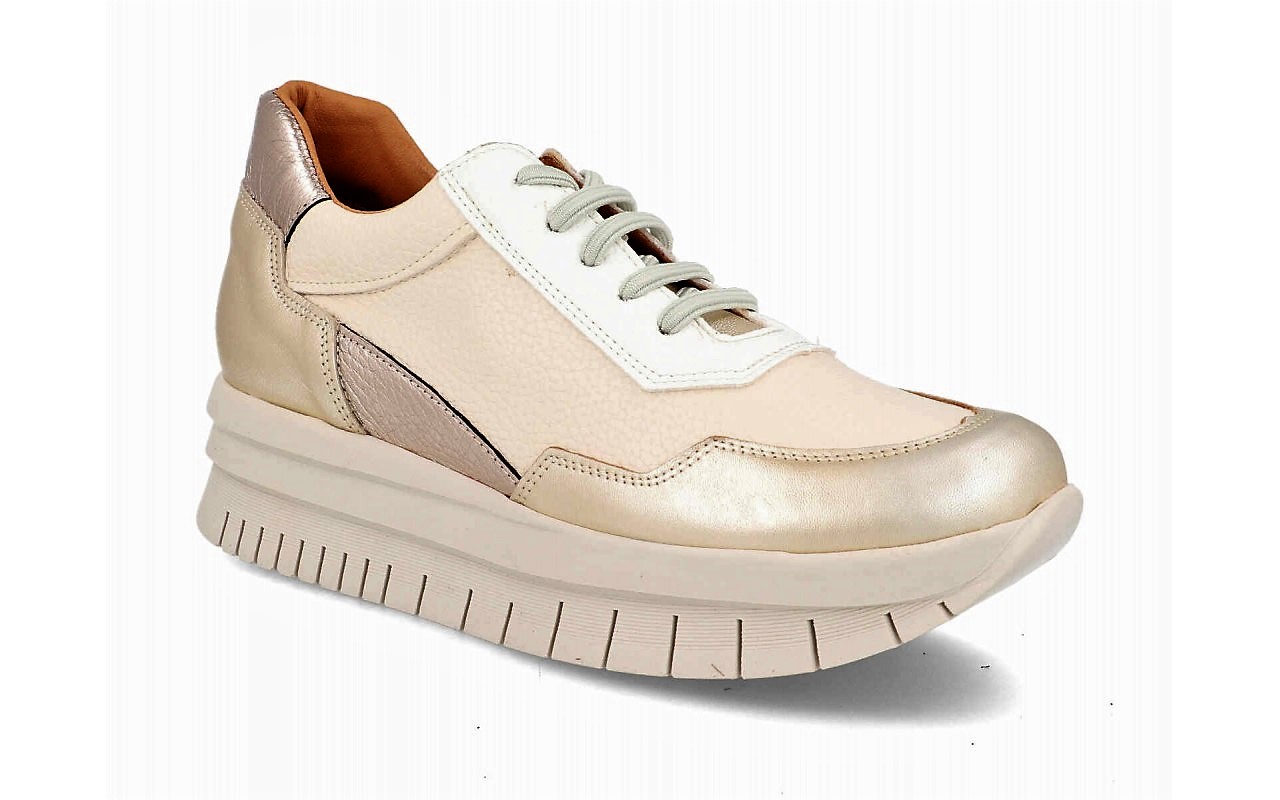 Material exterior piel, interior textil y piel, plantilla "Extraíble" de textil foamizado, piso-suela sintético, altura del tacón / cuña 3.5 cm. colores: beige y platino