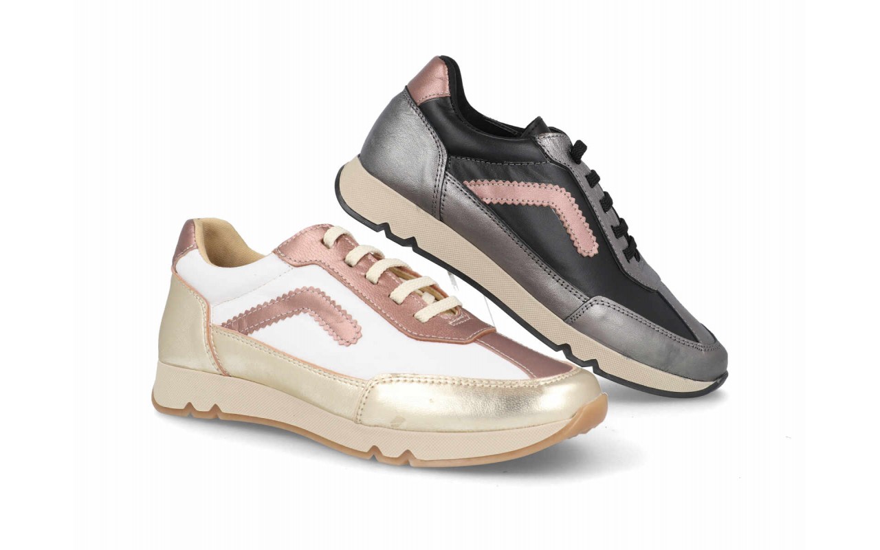 Material exterior piel, interior textil y piel, plantilla "Extraíble" de textil foamizado, piso-suela sintético, altura del tacón / cuña 2.5 cm. colores: negro y blanco